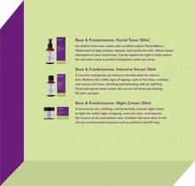 Rose & Frankincense: Night Cream 50ml, Rose & Frankincense: Intensive Serum 10ml, Rose & Frankincense: Facial Toner 50ml